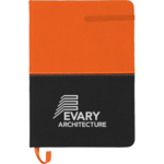 PU color block, hard bound journal. Color matching ribbon page marker. 80 sheets of white lined pages. Elastic closure.