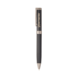Exclusive The Brass Co® design. Shiny black upper barrel with linear pattern bottom barrel. Gunmetal accents.Twist action mechanism. Subtle The Brass Co® branding on pen clip and middle ring. Includes premium black German ballpoint ink cartridge. Includes 2-piece The Brass Co® gift box.