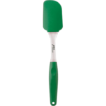 The Silicone Spatula is a flexible spatula with a plastic and rubber grip handle. It meets FDA requirements, is BPA free and dishwasher safe.