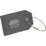 Premium, textured UltraHyde material. Metal wire with twist action closure to attach tag to luggage or strap.