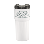 Design features an intricate geometric cut that creates a great tactile and visual experience. Double-wall, copper vacuum insulated, stainless steel construction. Keeps drinks hot for 8 hours and cold for 24 hours. Translucent, screw-on lid with flap-seal closure. Fits most standard car cup holders. Leed's Exclusive. 20oz.
