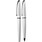 Set includes (2768-19) and (2768-20). Streamlined from integrated clip to tapered tip, ATX delivers singular contemporary style in a chic, ergonomic package. A delicate balance of design ingenuity and practical sensibility that's often imitated, never duplicated. Smooth black ballpoint and roller ball ink. Includes lifetime mechanical guarantee and signature Cross® gift box.