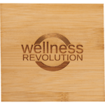 This five piece coaster set includes four bamboo coasters with a bamboo caddy to easily store the coasters. The coasters stack neatly in the caddy and put any logo prominently on display. Decoration on all four coasters. Due to the nature of the bamboo material, variations in laser imprinting quality may occur.