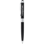 Innovative elleven™ design. High-gloss silhouette designed to work with most smart phones and and tablet devices. Stylus uses capacitive touch technology. Twist action mechanism. Includes premium black ballpoint ink cartridge.