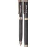 Exclusive The Brass Co® design. This set includes shiny black upper barrels with linear pattern bottom barresl. Gunmetal accents. Subtle The Brass Co® branding on pen clip and middle ring. Includes premium black German ink cartridges. Includes 2-piece The Brass Co® gift box.