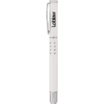 Unique brass barrel cutouts reveal high shine chrome accents. Cap off design. Pen includes premium black ink cartridge.