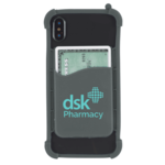 Multiple function silicone phone wrap with Card holder. It conveniently wraps around the corners fit to most of phone sizes, The card wallet on back can hold up to 2 credit cards/Room key card/ 5 business cards or cash.