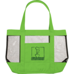 The Surfside Mesh Accent Tote features an open main compartment with double 23 inch handles and a front open pocket.