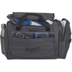 The NBN or "No Brand Needed" collection features bags that use high-end retail-inspired materials without the co-branding to allow your logo to shine. The NBN Whitby Duffel makes a great gym or travel companion. This duffel features a large zippered main compartment with interior organization, a side mesh water bottle pocket, and a front slash pocket with magnetic closure. A bonus feature on this duffel is a zippered side shoe pocket with ventilation and a hook and loop closure side pocket. Added features include a rectangular vegan leather lash tab to attach keys or a carabiner. The padded adjustable shoulder strap allows for easy carry or you can remove it and use the padded grab handles as well. Looking for a new way to showcase your brand? This bag includes an oversized zipper pull that's available for decoration.