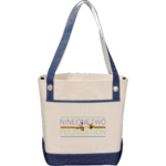 Open main compartment. Open front pocket. Metal grommets reinforce handles. 12" handle drop height.