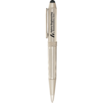 Exclusive Cutter & Buck® design. Brushed nickel finish with barrel etched linear detailing and Cutter & Buck® insignia on pen clip. Pen includes premium black ink cartridge and rubberized stylus ideal for touch screens including the iPad and iPhone, as well as retail payment pads.