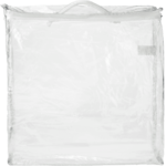 Vinyl tote blanket bag with zippered closure and convenient carrying handle.